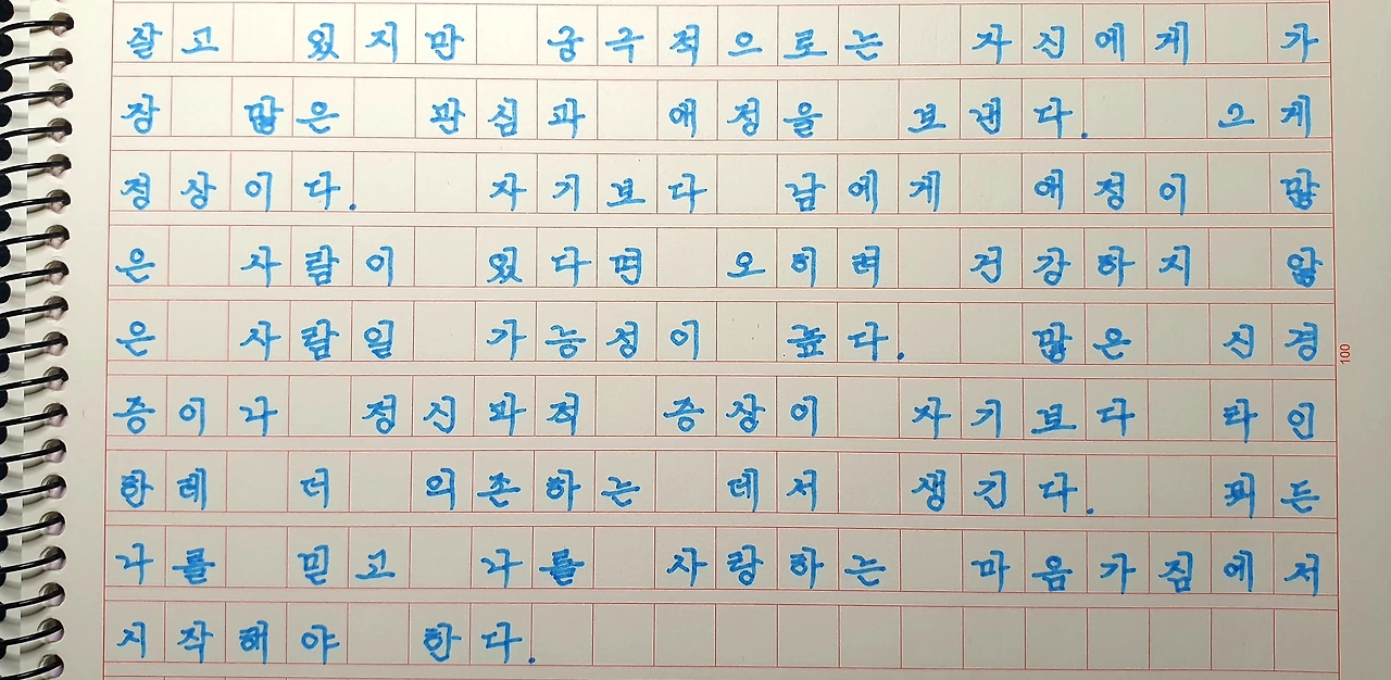 오늘 글에서 작가는 '인간을 자신밖에 모르는 존재'라 했다. 자신을 제일 사랑하고 먼저 돌보는 것이 정상적인 삶이라고 정의했다. 우리 대부분은 가족과 친구, 회사, 타인을 제일 앞에 두고 살아왔다. 비정상으로 보낸 삶이다. 어서 빨리 제자리를 찾아야 한다.