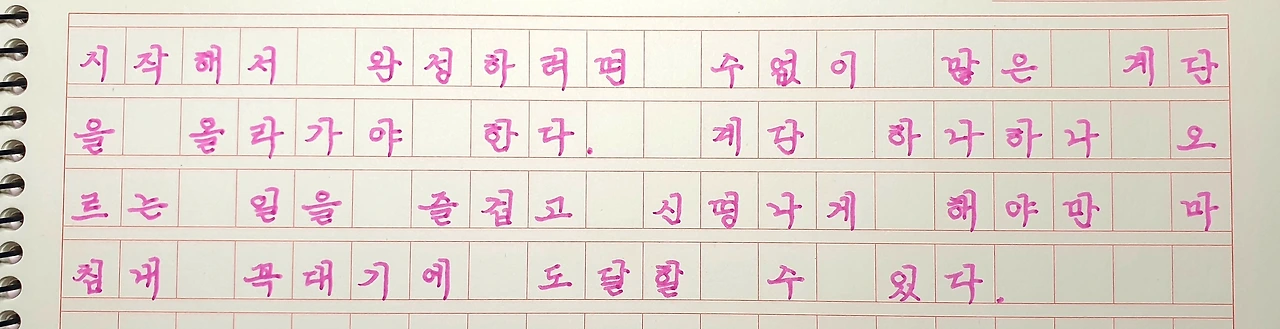 엄밀히 말하자면, 필사라는 난간을 잡고 글쓰기라는 계단을 하나씩 올라가고 있다. 매일 한 개씩. 절대로 두 칸은 없다.