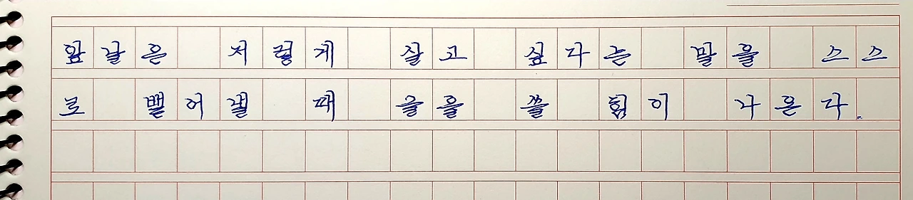 글씨를 잘 쓰기 위해서는 무조건 많이 써야 한다. 글씨 연습을 위해 책상에 앉으면 무엇을 쓸지 난감할 때가 많다. 계속해서 쓸 감을 머릿속에서 끄집어내는 것은 쉽지 않다. 좋아하는 노래 가사나 인생 명언 등을 리마인드 하며 쓸 수는 있지만 지속적인 글씨 쓸 거리로는 턱없이 부족하다. 그렇게 해서 선택한 것이 필사다.