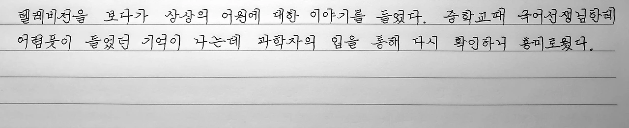 오늘 필사 방송은 제목을 '필사로 자신이 성장합니다.'라 입력하고 시작을 알렸다. 매일 바꾸는 제목에는 필사의 장점과 효과를 짧은 문장으로 표현하려 애쓴다. 제목에 이끌려 한 명이라도 더 펜을 잡았으면 하는 절실함의 유혹이다. 어그로보다는 안내문에 가깝다는 생각이다.