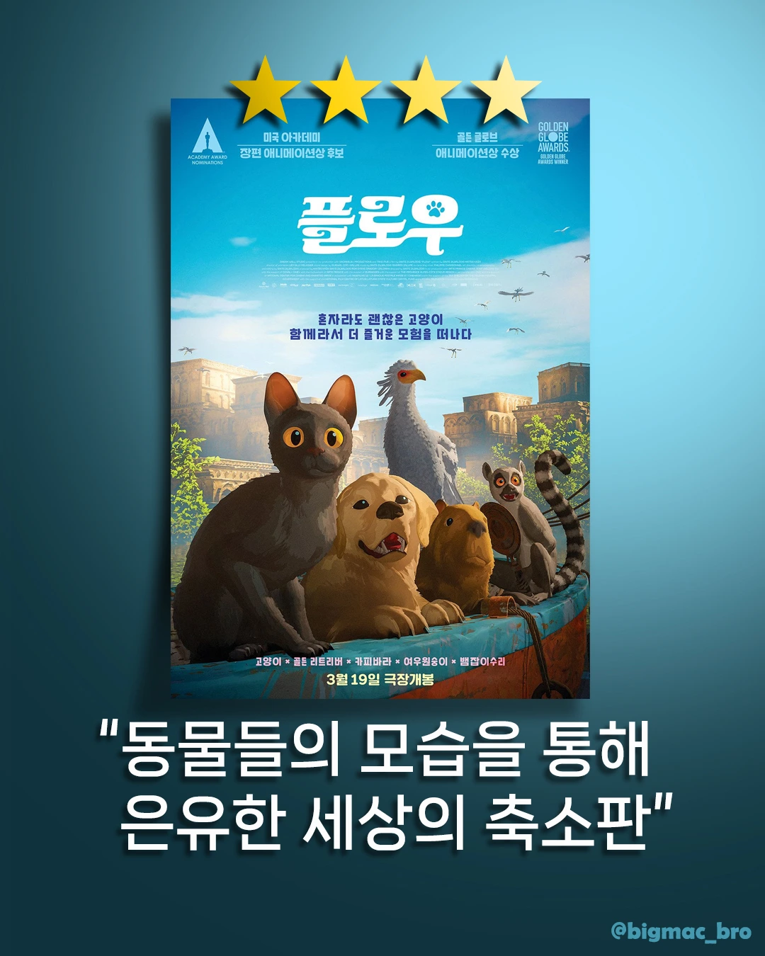 감독님이 동물들 모션 연구하는 데만도 꽤 고생하셨겠구나 싶었을 정도로 사실감과 생동감이 잘 느껴졌음.