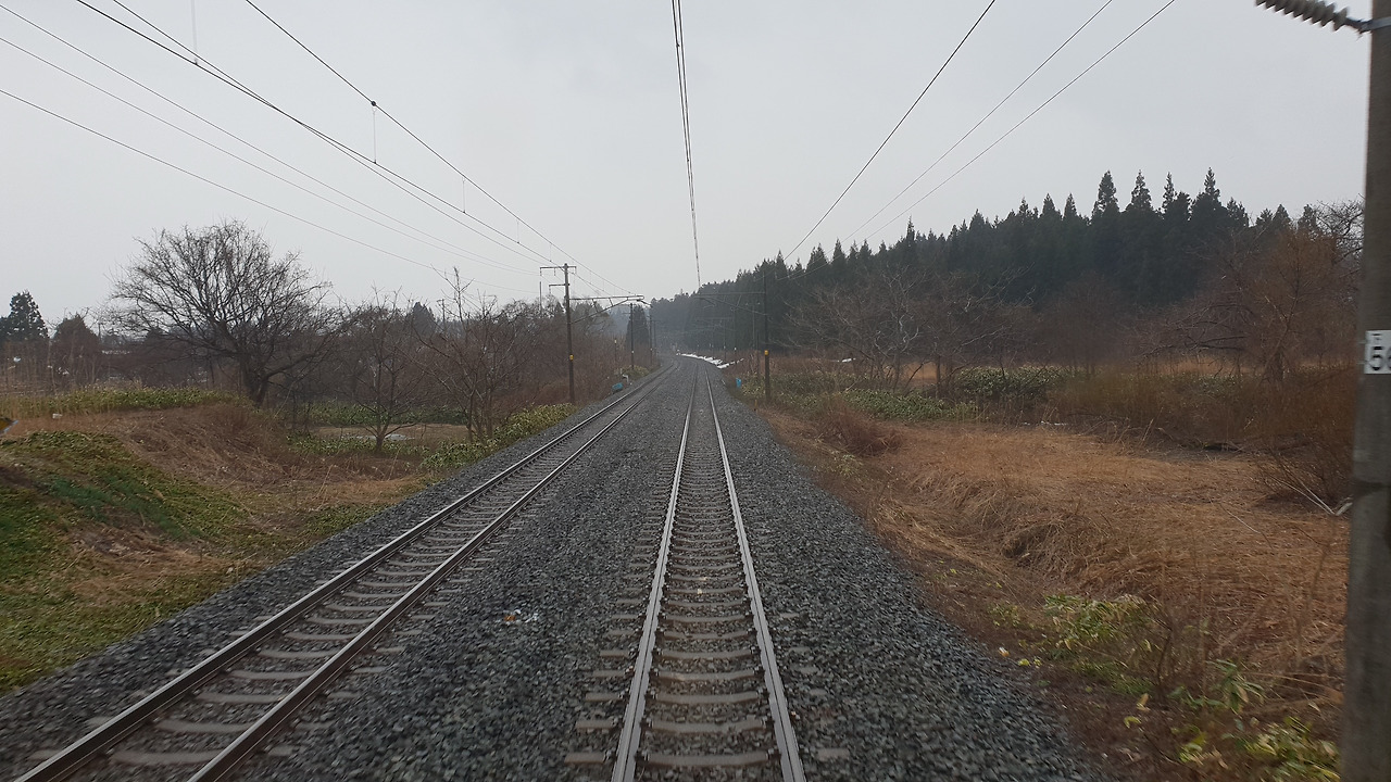 열차는 최대한의 출력으로 달리고 있지만, 마치 다람쥐가 쳇바퀴 돌듯 주변 풍경조차 바뀌지 않는 이런 차창 풍경을 보고 있으면 어느새 눈이 감기곤 한다. 일본에서 유일하게 승객이 전면 풍경을 담을 수 없는 신칸센은 이런 지루한 풍경의 연속이기 때문에 전면부를 개방하지 않은 것이 아닐까 싶다.