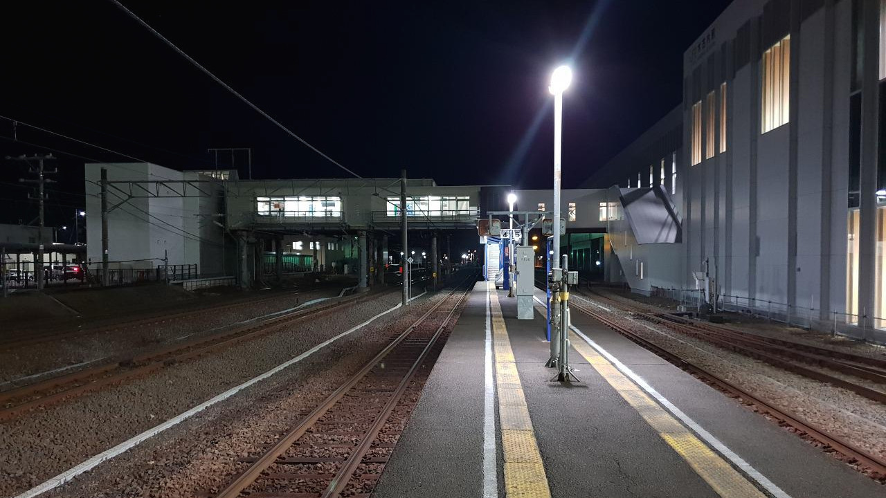 승강장 끝이 보이지 않을 정도로 긴 제3 섹터 철도 이관 구간.