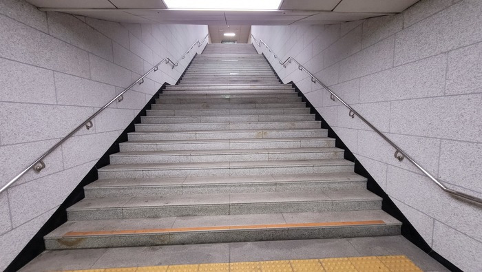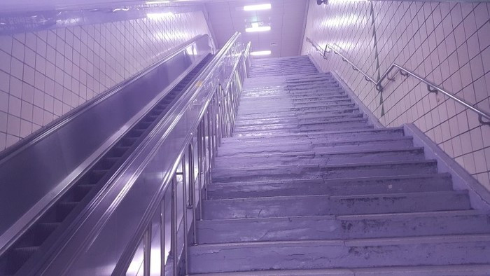 ▲ 노후화 된 에스컬레이터를 해체하고 계단으로 바꿔놓은 기존 환승통로.