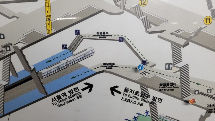 하지만 반대편의 서울역 방면의 승강장은 1호선 선로를 횡단하기 위해 한번 올라갔다가 다시 내려가는 환승통로 구조인지라 시간도 두 배가 더 걸렸다.