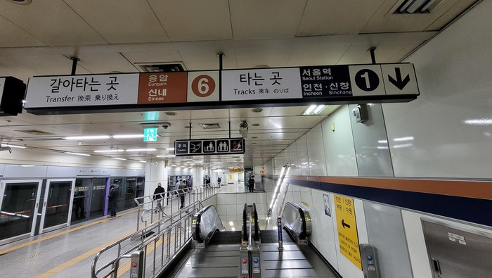 그러므로 6호선 환승안내에는 1호선 반대편 방면 타는 곳도 표기됐다. 주로 대합실에서 승강장 안내가 있기에 환승통로에는 같은 노선의 반대편 타는 곳 안내는 거의 볼 수 없다. 그러나 1호선 동묘앞역은 출구와 승강장이 바로 연결된 특수한 형태로 흔하지 않은 안내판도 볼 수 있다.