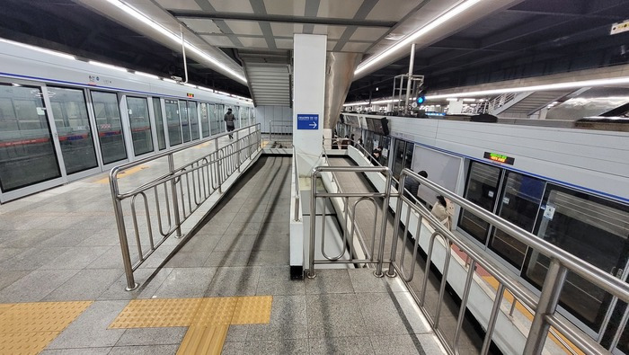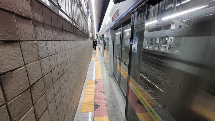 ▲ 출입문이 열리면 승객을 당황하게 만드는 좁은 폭의 승강장(승강장에서 본 모습).