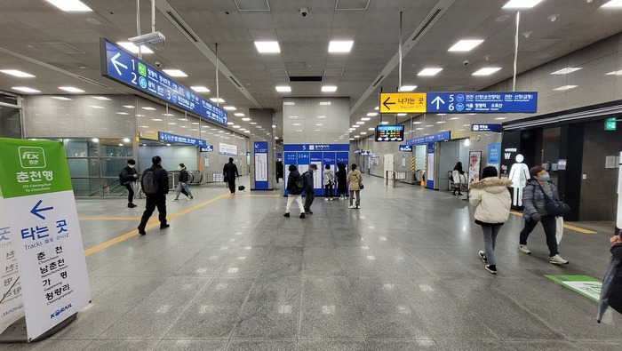 그 통로는 상당히 넓은 것도 아니고 한 사람이 겨우 타는 양방향 에스컬레이터 한 쌍과 세 네 사람이 겨우 지나갈 수 있을 정도의 좁은 폭을 가진 계단이 전부다. 그리고 그 가운데는 엘리베이터가 있다. 코레일 소속의 역은 대부분 이렇게 연결통로가 한 곳에 불과해서 열차에서 내려서 대합실로 올라가는 것부터 전쟁이다.