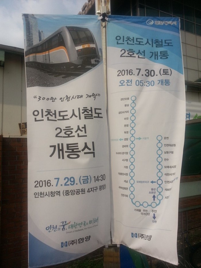 ▲ 인천 2호선 개통 안내 플래카드(2016년 촬영).