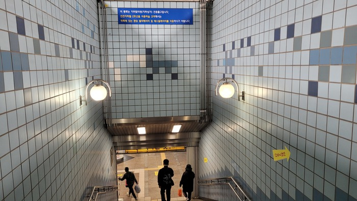 ▲ 주안역 지하상가로 이어지는 연결통로. 이곳에는 아주 작은 글씨로 인천 2호선으로 환승할 수 없음을 안내해놓았다.