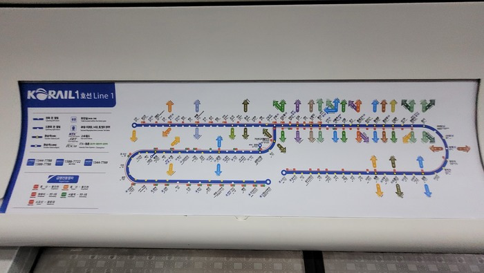 세세하게 노선을 구분해보면 1호선은 지하철 구간인 서울역~청량리역과 북쪽으로는 경원선 구간인 청량리역~소요산역이 있다. 남쪽으로는 좀 더 많은 노선이 하나로 통합해서 운영 중인데, 먼저 서울역~천안역의 경부선, 구로역~인천역의 경인선, 천안역~신창역의 장항선에 2개의 지선 노선까지 하나의 노선이 되었다.