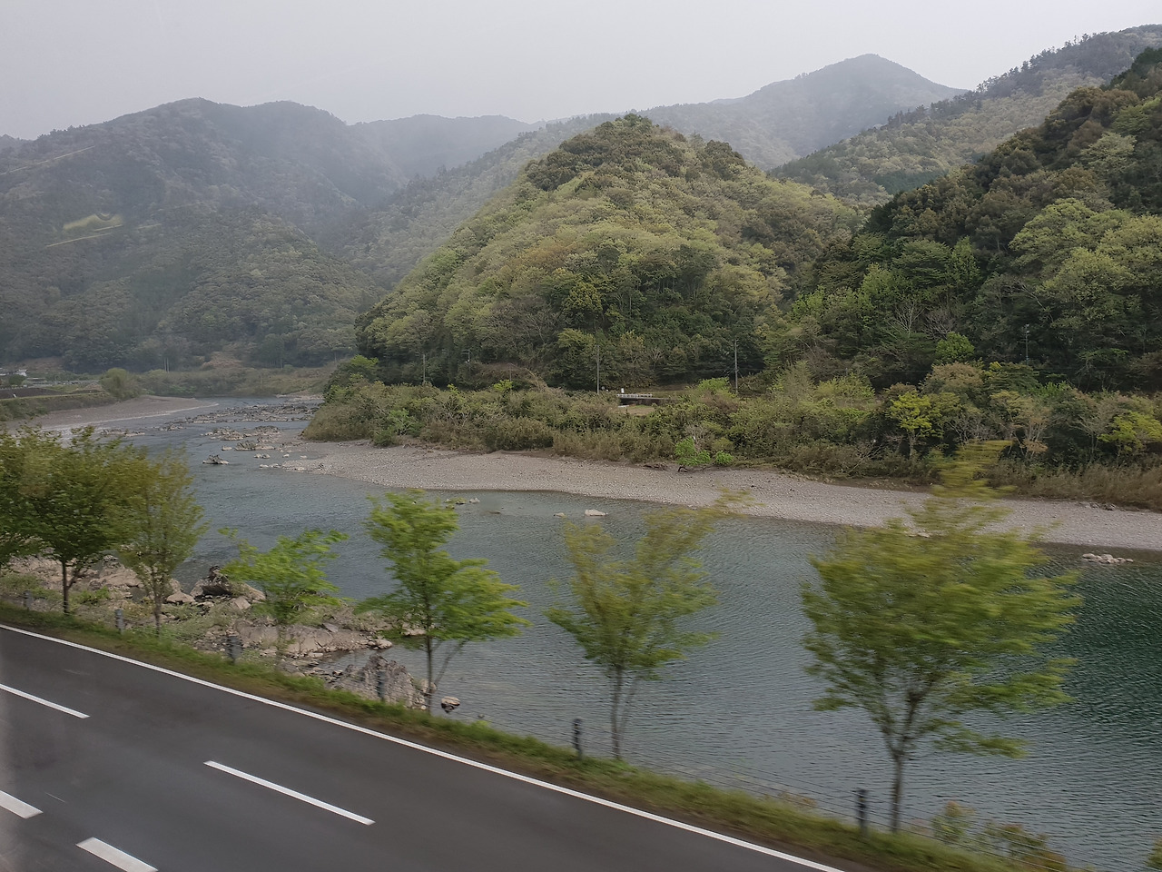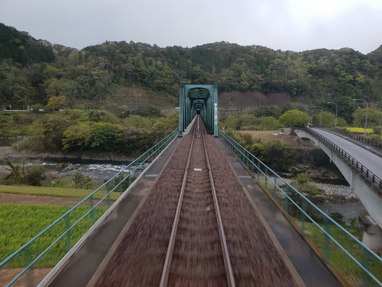 시만토강이 흐르는 대로 따라 이어지는 요도선은 복선 전철화로 망가지기 전 경춘선의 모습을 보는 것 같았다. 곡선이 많은 철도는 열차를 느리게 달릴 수밖에 없게 만들지만, 그 느림 속에서 숨겨진 아름다운 경치를 선물해준다. 일본 시골 철도가 단순히 운송에 그치지 않고 여행이 될 수 있는 것도 바로 이런 이유에서다.