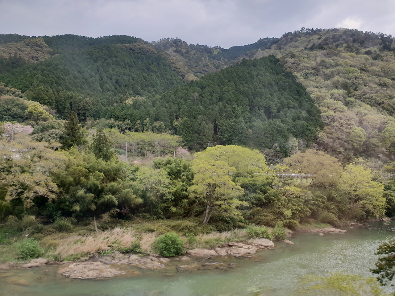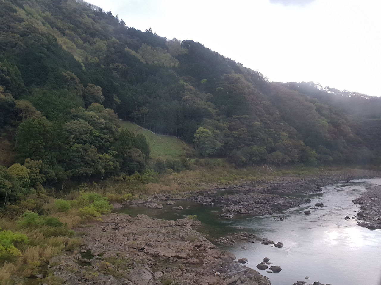 시만토 강의 풍부한 유량이 요도선의 경치를 만들어준다.