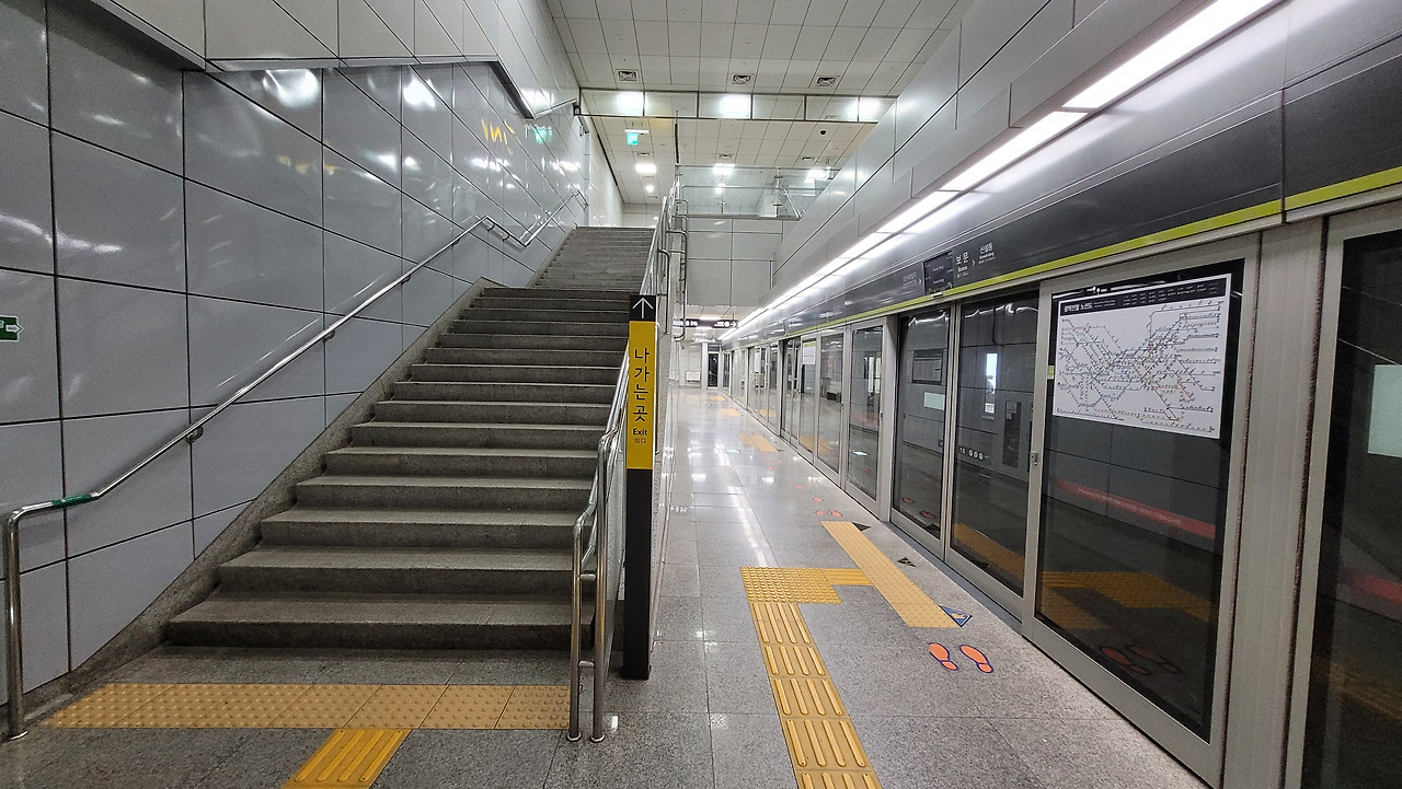 2개 층 가까운 높이를 이동해야 하기 때문에 계단을 이용하는 승객은 생각보다 적다. 이런 점을 고려했을 때 에스컬레이터 폭을 좀 더 넓히고 계단 폭을 줄였으면 어땠을까 생각해본다.