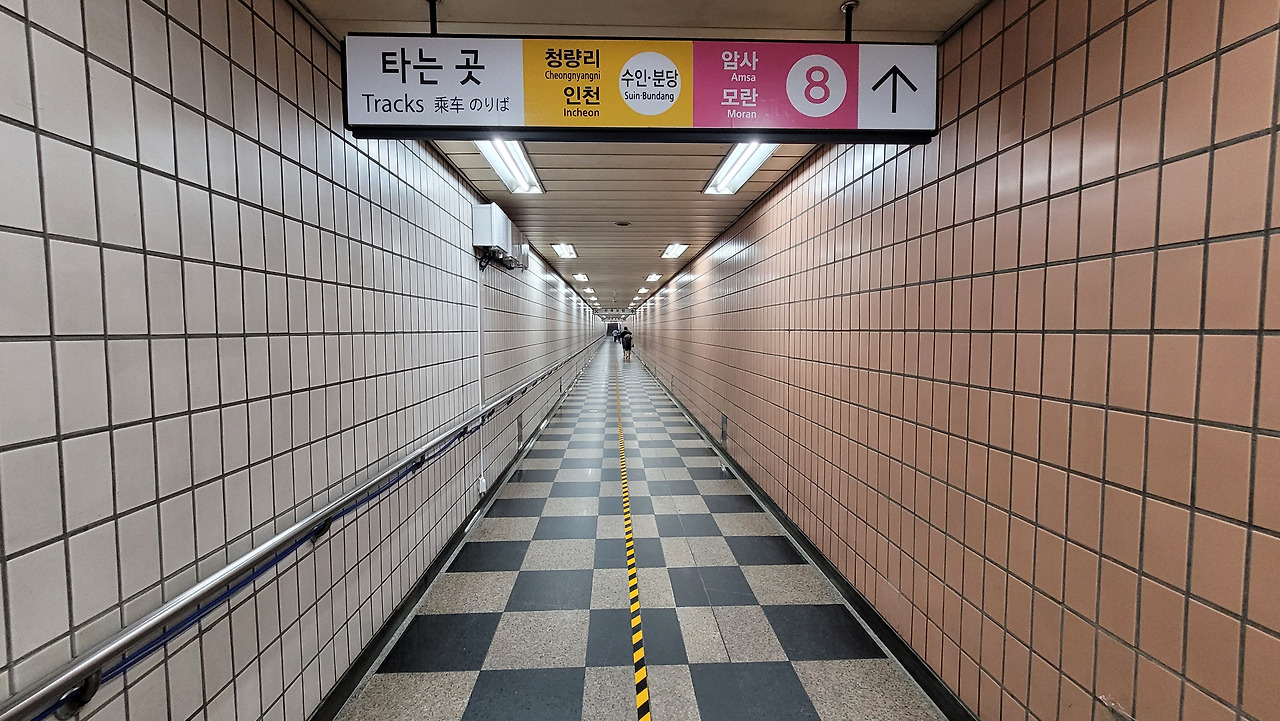 ▲ 8호선 승강장에서 바라본 수인분당선 환승통로.