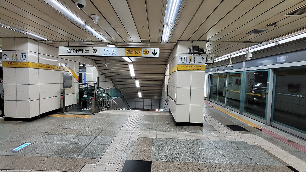 2번 출구를 나와 진행방향 좌측으로 방향을 돌리면 버스 차고지와 함께 버스 환승센터가 펼쳐진다. 서울역이나 여의도 환승센터에 비하면 조촐하지만 그래도 탑승 번호에 따라 버스 종류가 다르다.