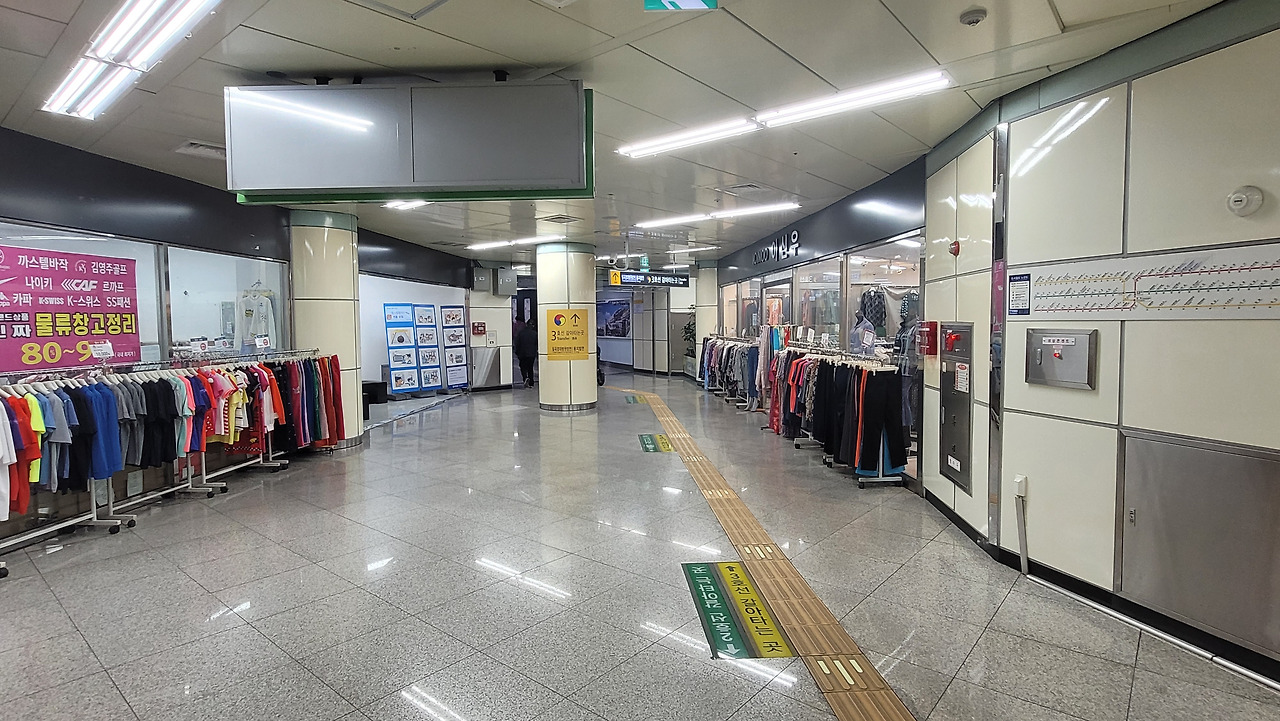 ▲ 환승통로 양쪽으로 이어져 있는 옷가게.