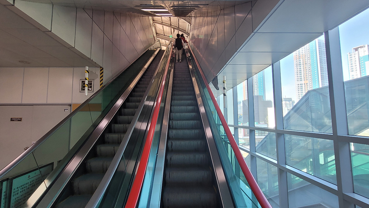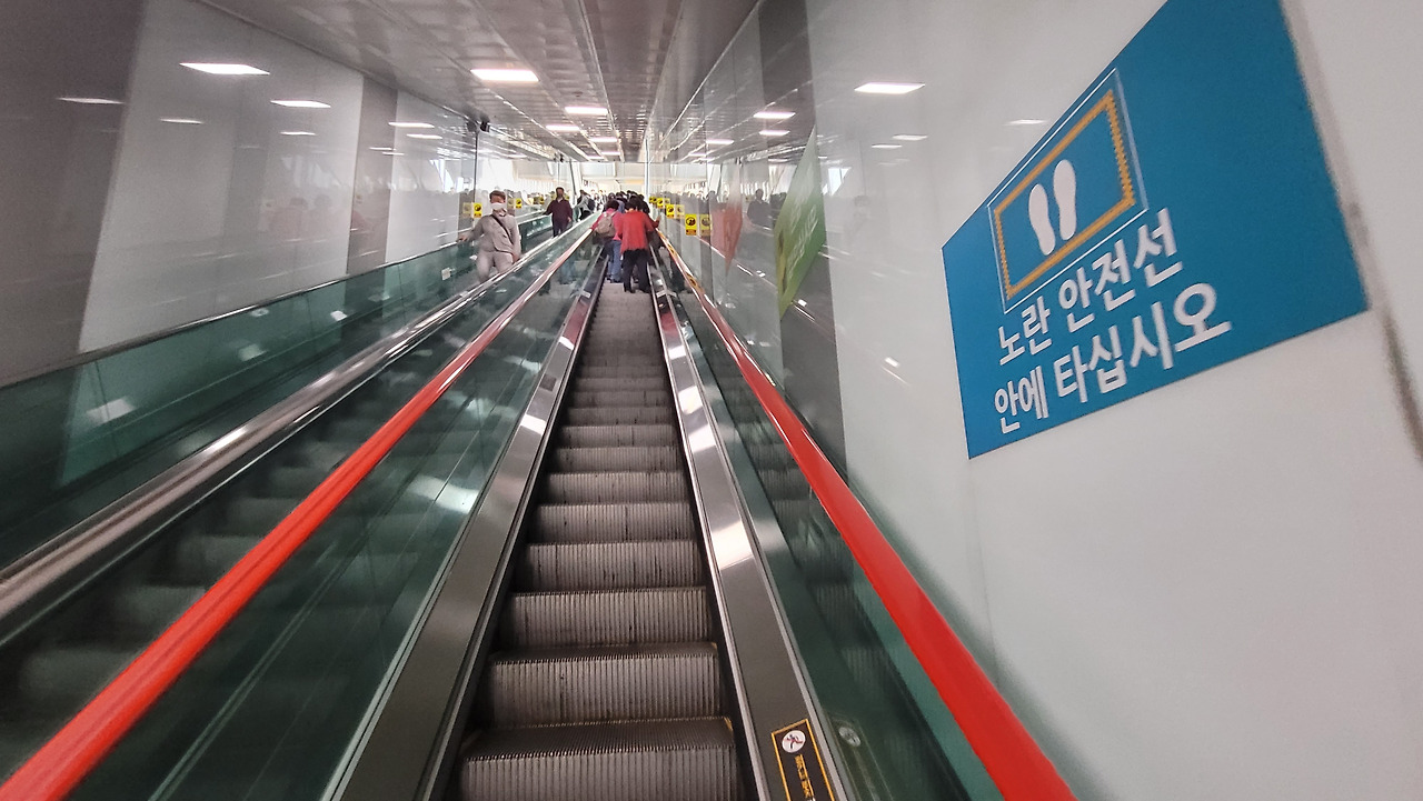 ▲ 한 사람이 서 있기에는 비교적 넉넉한 에스컬레이터(환승통로).