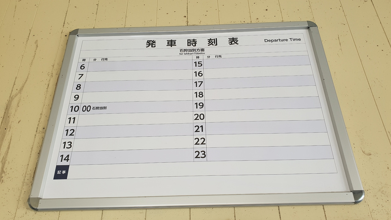 단 한 대의 열차만 표기되어있는 신토츠가와역의 시간표.