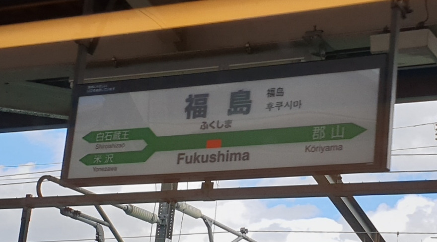후쿠시마역과 모리오카역은 역명판만 보면 크게 다르다는 느낌을 받기 어렵다.
