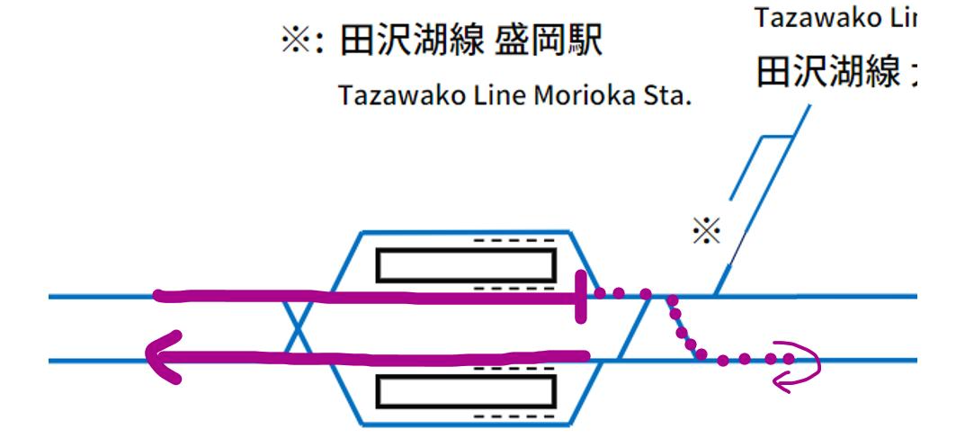 모리오카 시종착 열차 이동 경로.