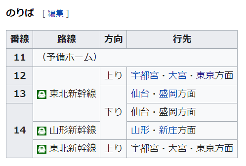 후쿠시마역과 다른 모습을 보이는 모리오카역 분기 설명(출처: 위키백과).