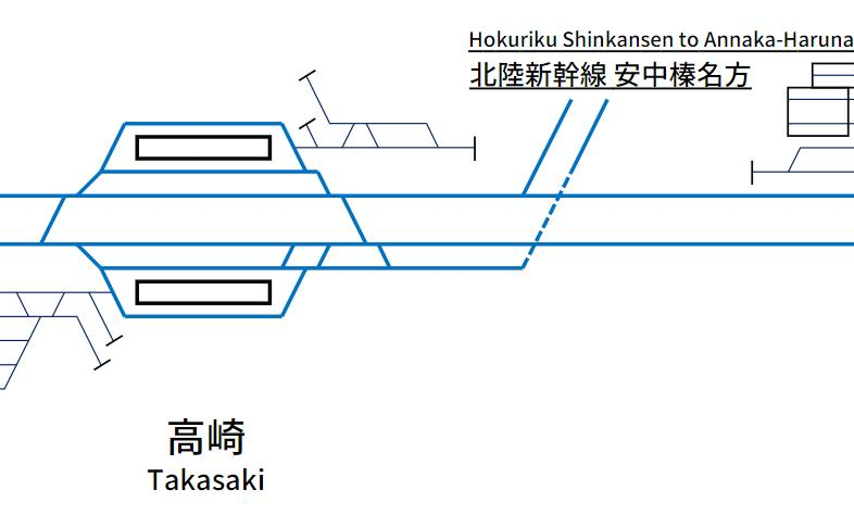 마지막으로 입체교차가 일어나는 오미야역과 다카사키역의 배선도를 가져와보았다. 확실히 미니 신칸센이 아닌 일반 신칸센이 갈라지는 경우에는 승강장으로 이어지는 선로가 복잡함을 알 수 있다. 그리고 분기해서 나가는 노선 역시 복선으로 이어진다는 점도 미니 신칸센의 분기와 달라지는 점이다.
