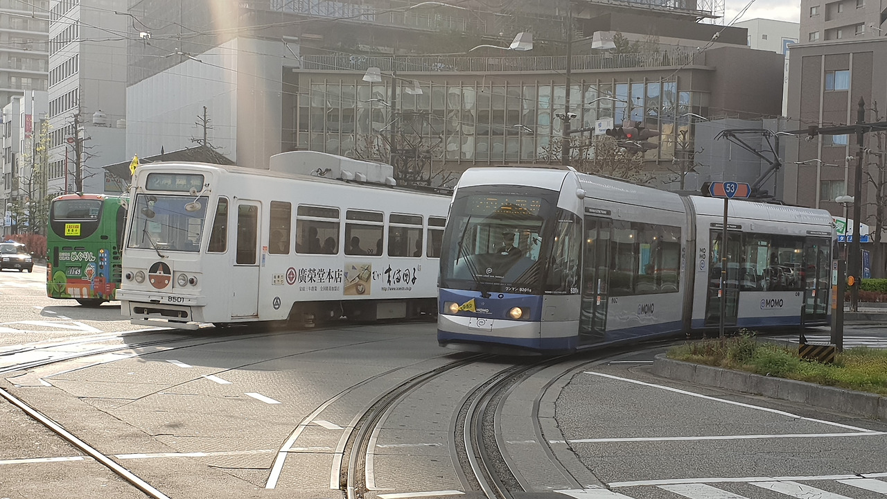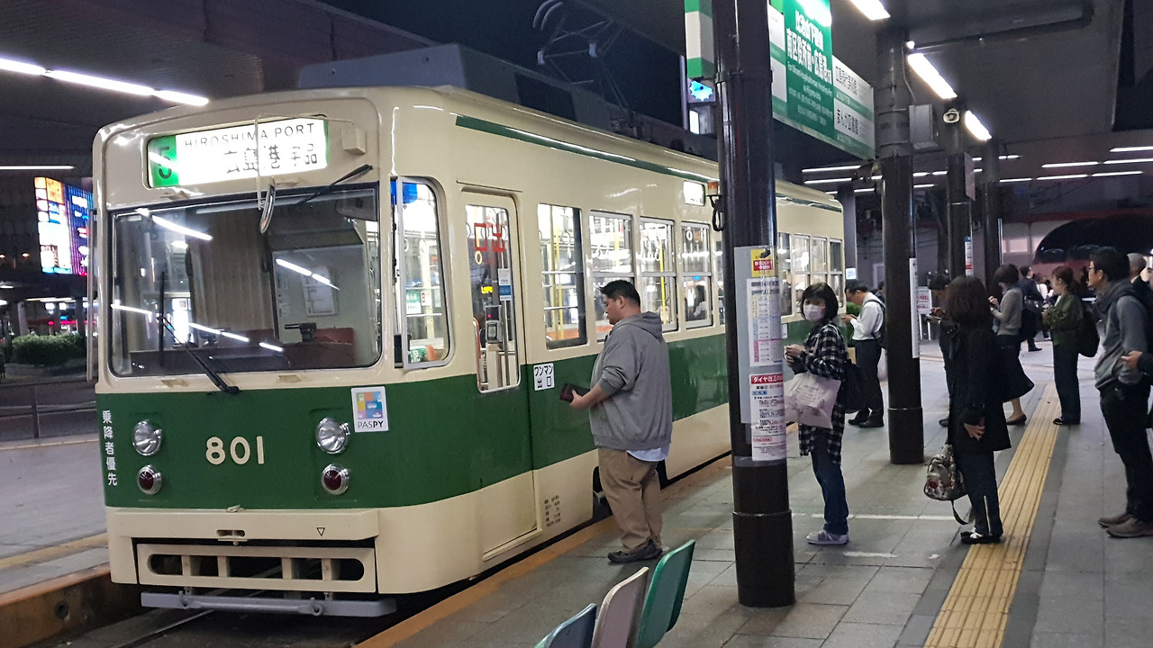 대도시지만 노면전차가 주된 교통수단인 히로시마에서는 지하철 못지않을 정도로 긴 편성의 노면전차도 볼 수 있는데, 아무래도 많은 승객을 수용하기 위해서 고안된 형태가 아닌가 싶다. 거기에 맞춰서 승강장 역시 규모가 제법 커진 모습도 볼 수 있었다.