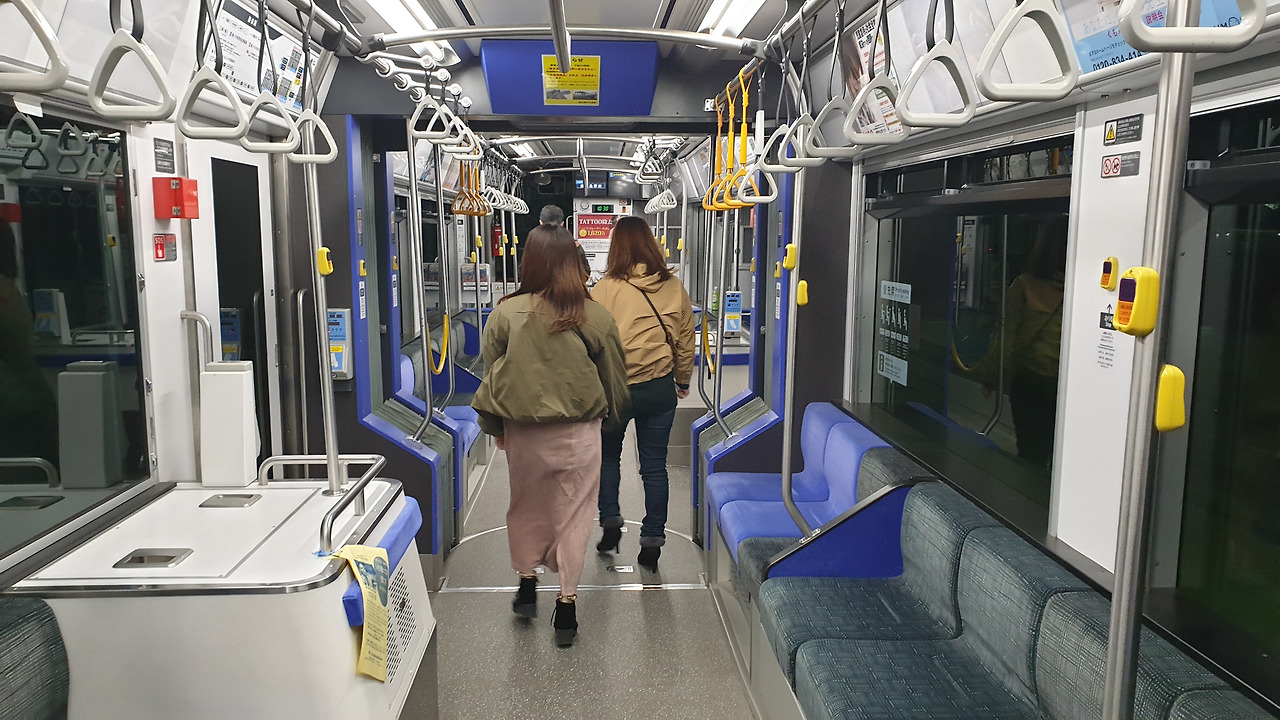 계단이 없기 때문에 확실히 넓게 보이는 노면전차 내부. 그리고 승하차 시에 계단이 없어서 기존 노면전차에 비해 줄이 길어지는 모습은 보기 어려웠다. 굴절식 노면전차의 경우 그만큼 열차 길이도 길어져서 마치 지하철 내부에 있는 듯한 느낌이 든다. 물론 내부도 디지털화로 바뀐 지 오래되었다.