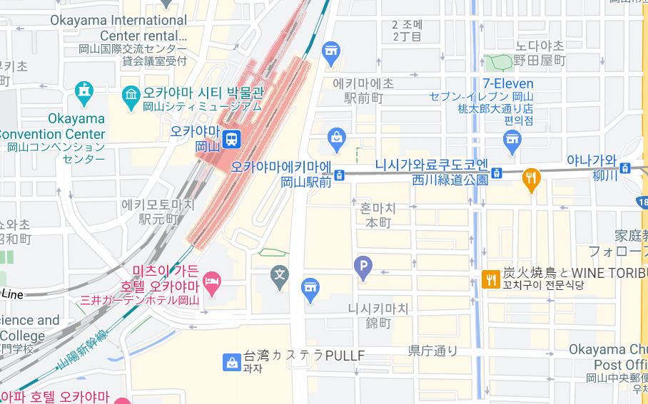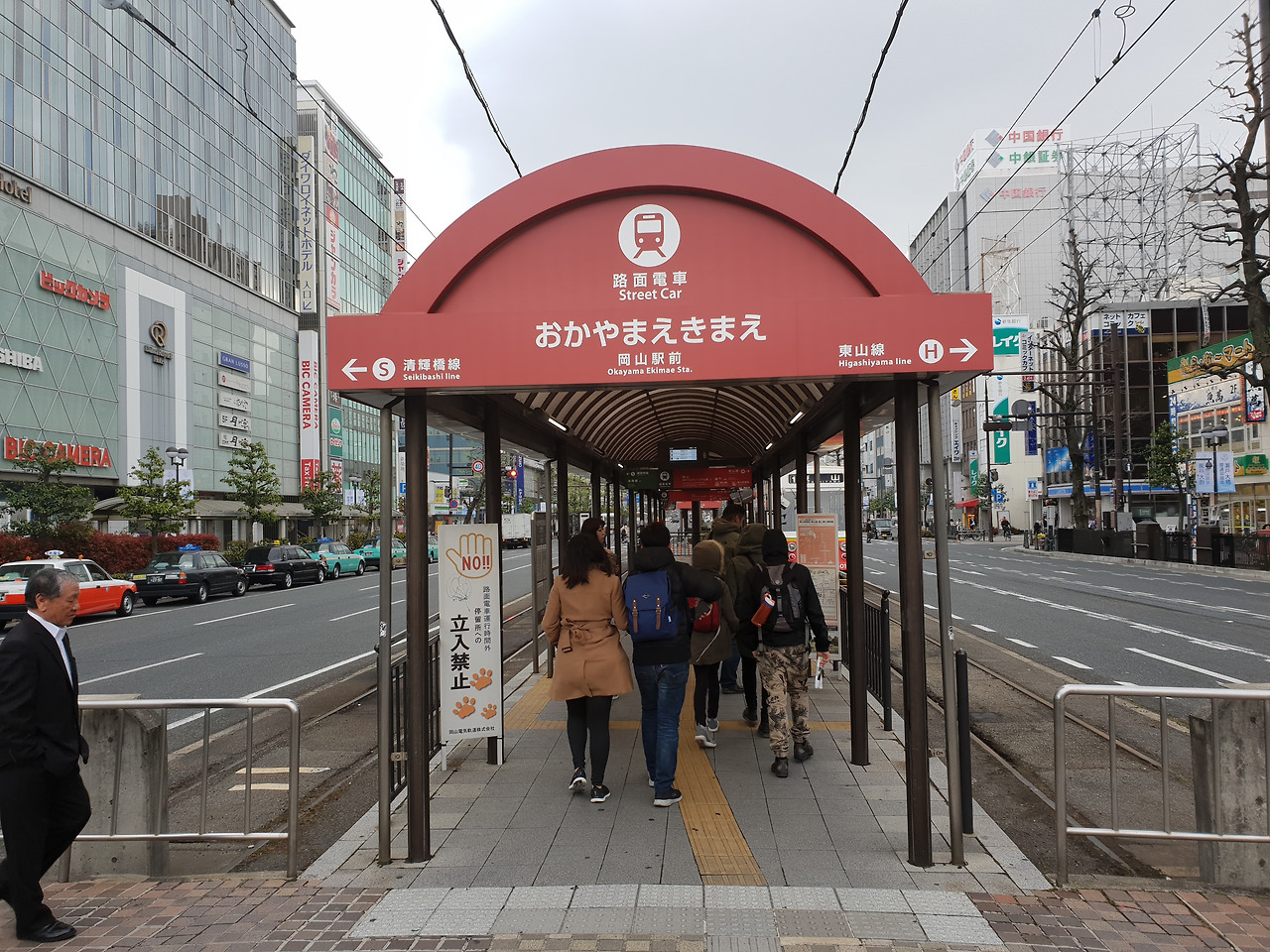다른 지역도 노면전차의 종착역을 JR역이 있는 곳에 자리한 곳이 많은데, 한결같이 승강장이 넓고 역에 최대한 붙어있음을 볼 수 있다. 그 대표적인 역이 히로시마에서 약간 떨어진 곳에 자리하고 있는 오카야마다. 노면전차의 역간격이 거의 신칸센 승강장 길이 정도 되는 거리임을 감안해볼 때, 노면전차의 역간격이 얼마나 짧은지 느낄 수 있다.