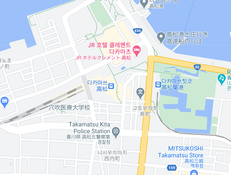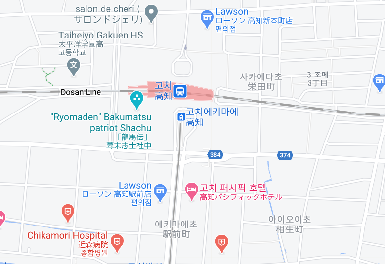 JR역을 낀 노면전차(다카마츠, 고치, 마츠야마).