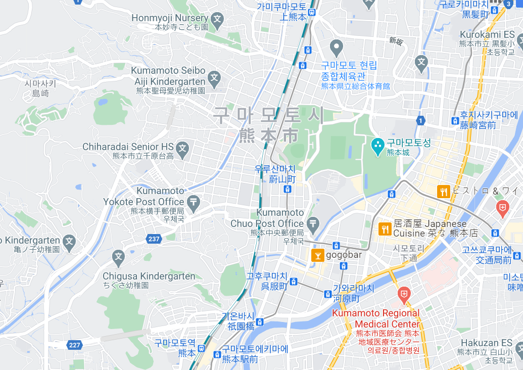 또 다른 규슈 지역의 노면전차를 운행하는 도시에서도 JR과의 연계는 상당히 중요해 보였다. JR노선이 거점 지역을 띄엄띄엄 운행해주면 노면전차는 그 사이에 있는 도심을 연결해주는 식으로 상호 보완하는 모습이다. 같은 구간이어도 JR은 역이 없지만 노면전차는 역이 많이 있는 것도 눈여겨볼 점이다.