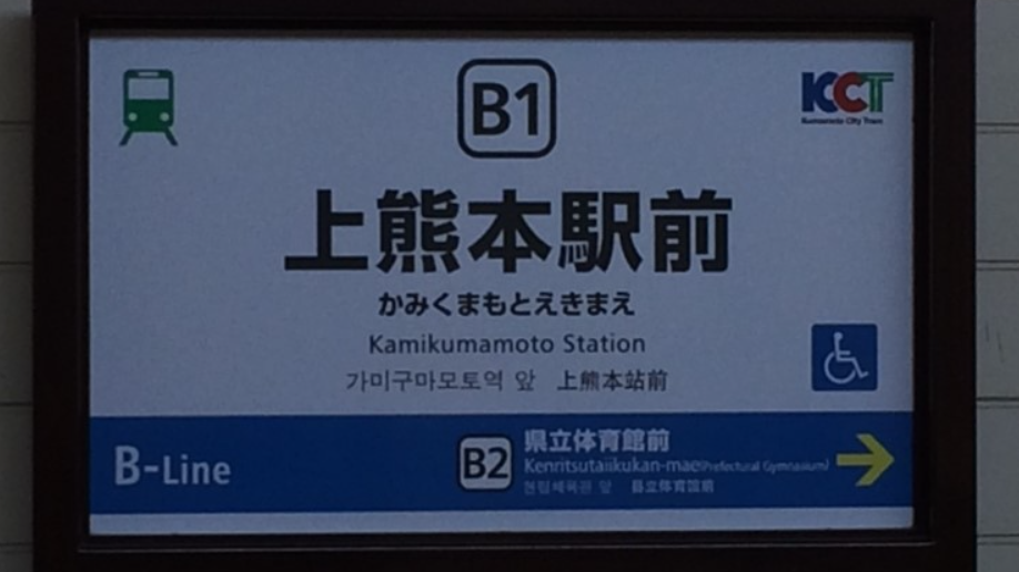 JR역을 끼고 있는 노면전차 역의 역명판.