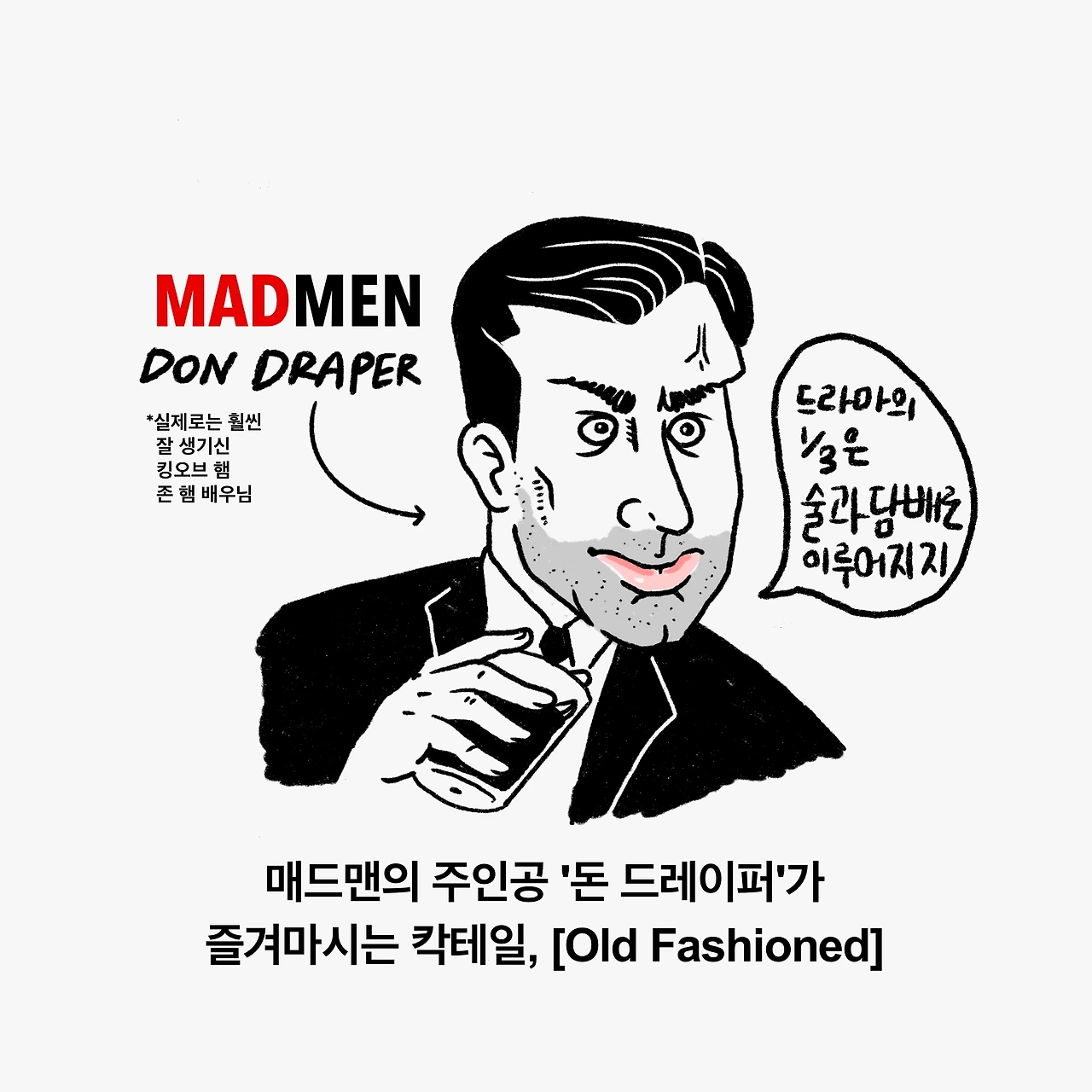 이 드라마를 보면 크리에이티브 디렉터인 주인공 '돈 드레이퍼'가 즐겨마시는 술을 알 수 있는데요