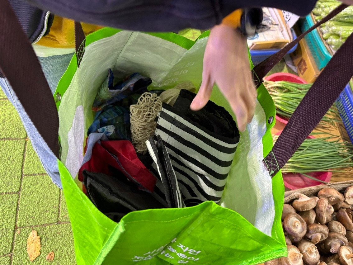 어느 평일 오전, 시장 입구에 섰다. 손에는 여러 면 주머니가 담긴 커다란 장바구니 하나. 오늘도 비닐을 안 받겠다는 다짐을 하며 들어갔다. 제로웨이스트 초창기에 유난히 어려웠던 실천 중 하나가 무포장 장보기였다. 장바구니는 예전부터 익숙하게 들고 다녔다. 생활 속에 깊이 스며든 도구라 누구에게나 익숙할 법했다.