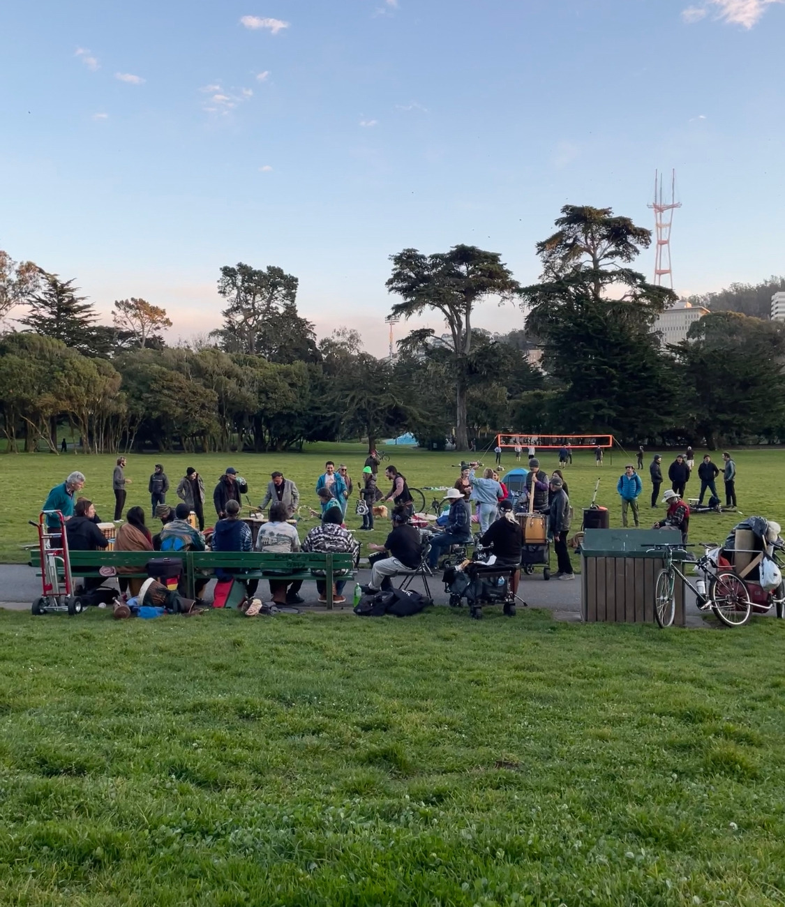 샌프란시스코 골든 게이트 공원 잔디밭, 노을 지는 하늘 아래서 노래 부르며 춤을 추는 히피 무리를 마주쳤다.