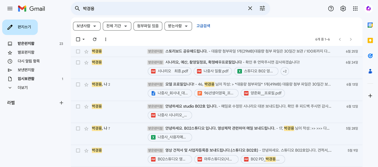 진행과정을 함께 보았는데 메일을 먼저 쭉 받으시고 그 중에서 적합해 보이는 배우들을 선별하시더라고요.