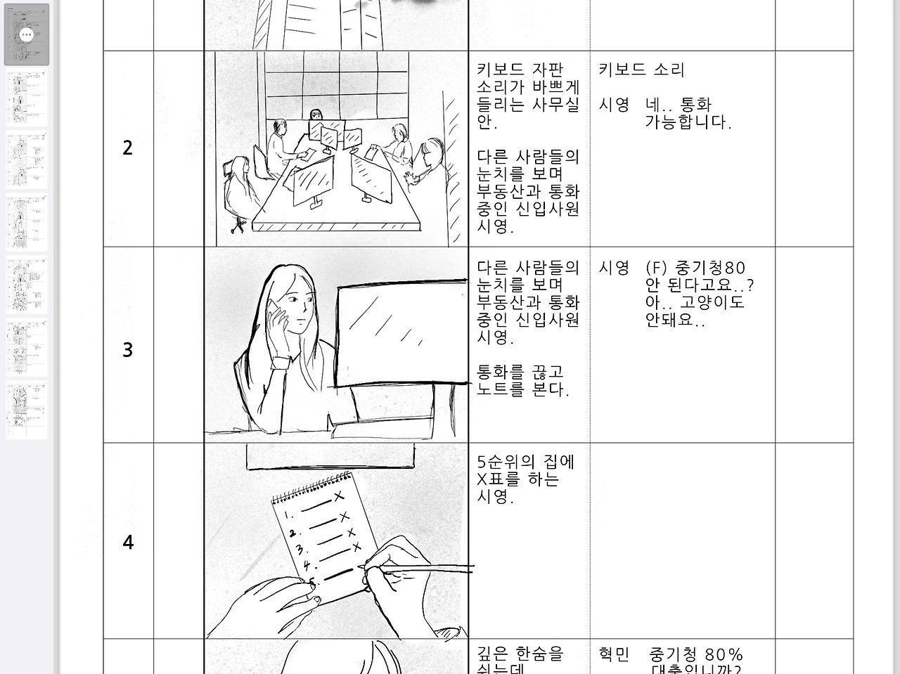 7페이지 분량인데 이게 1분 정도 되는 광고영상의 스토리보드입니다.