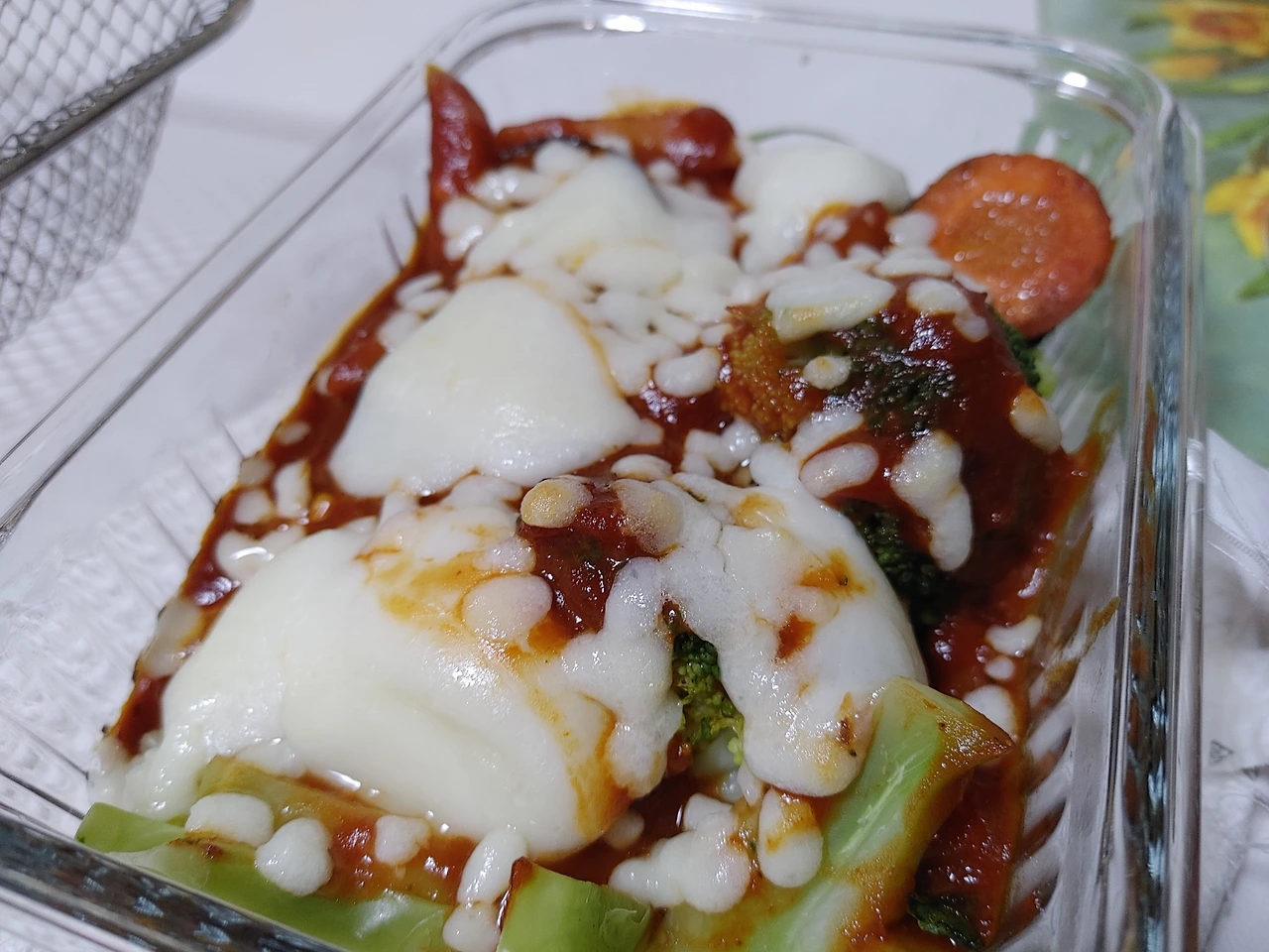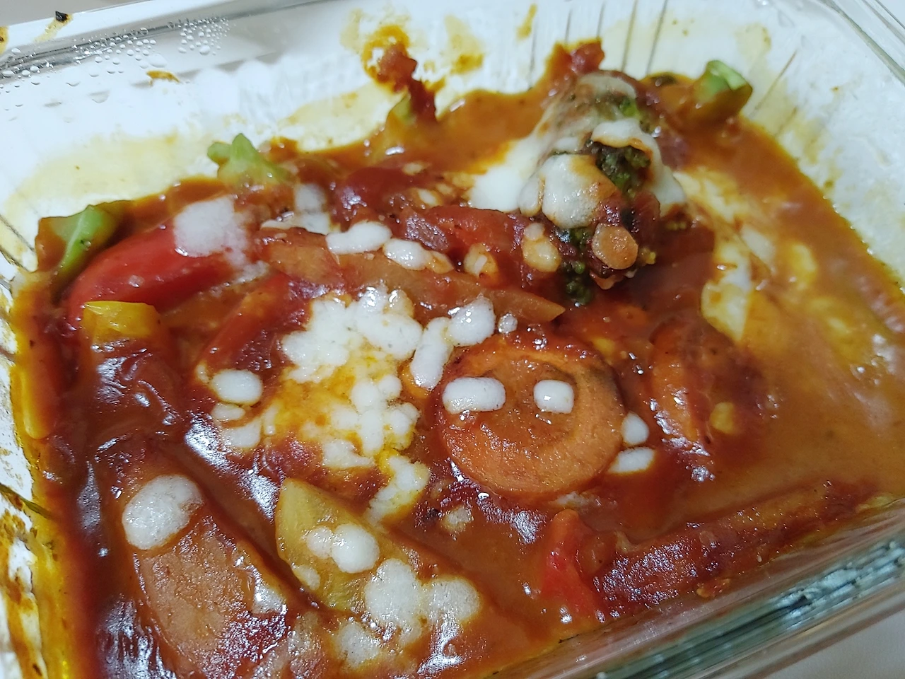 아침 식단으로 야채를 볶아서 먹곤 했는데, 토마토소스를 올려 그라탕을 만들어 먹으면 피자나 파스타를 먹는 것처럼 맛을 낼 수 있다.