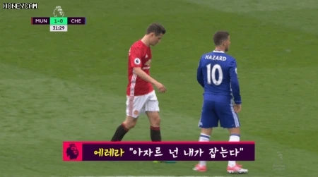 아자르에 대한 마크맨 설정을 살펴보기 전, 이 경기에서 맨유는 4-4-2의 포메이션을 들고 나왔는데, 이는 포메이션만 본다면 지역방어에 초점을 둔 듯한 전술처럼 보이기도 하다. 그러나 4백라인에 다르미안 로호, 바이, 그리고 평소 중앙미드필더로 활약하던 에레라를 측면 풀백에 배치하면서 첼시의 3-4-3 포메이션에 대한 맞춤형 전술이라 할 수 있다. 당시 2016-17 프리미어 리그에서 아자르, 코스타,페드로를 쓰리톱으로 앞세워 막강한 화력을 보여준 첼시는 시즌 내내 3-4-3전형을 사용하였는데, 3-4-3 포메이션의 구조적 문제점은 2선 자원에 중앙미드필더가 2명밖에 없어서 중앙통로(centre route)에서 중원의 수적 열세가 발생한다는 점이며, 첼시는 이러한 문제점을 해결하기 위해 아자르와 페드로가 경기 중간중간에 내려와 중원에서의 수적 열세 극복에 도움을 주고 압박 강도가 비교적 강한 중앙지역에서 패스와 드리블에 능한 아자르는 중앙에서 플레이메이킹으로 1선의 코스타와 페드로에 질 좋은 패스를 넣어주면서 문제점을 강점으로 극복하였다.