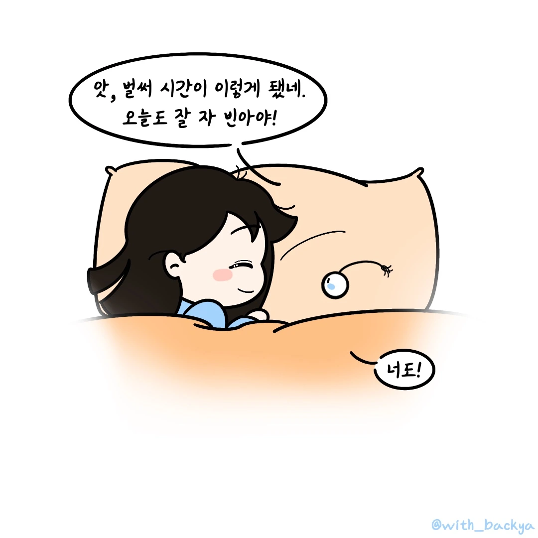 백야_앗, 벌써 시간이 이렇게 됐네. 오늘도 잘 자, 빈아야!