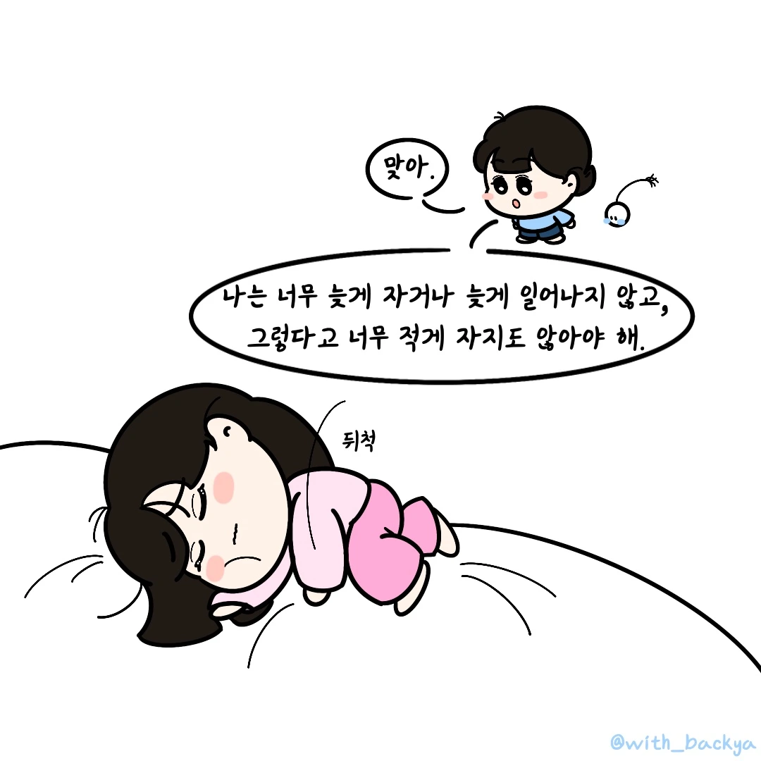 빈아_맞아. 나는 너무 늦게 자거나 늦게 일어나지 않고, 그렇다고 너무 적게 자지도 않아야 해.
