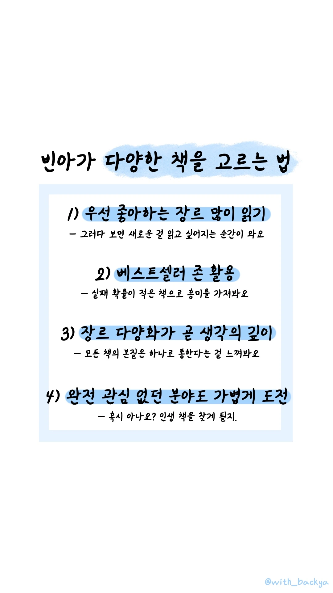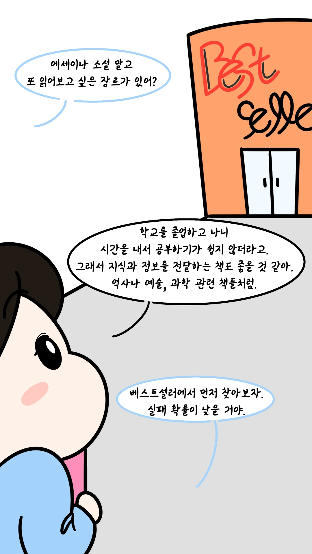 빈아_학교를 졸업하고 나니 시간을 내서 공부하기가 쉽지 않더라고. 그래서 지식과 정보를 전달하는 책도 좋을 것 같아. 역사나 예술, 과학 관련 책들처럼.