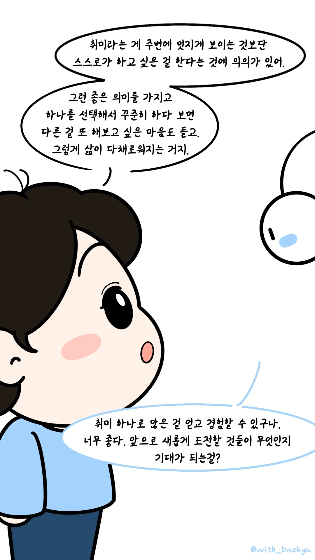 백야_취미 하나로 많은 걸 얻고 경험할 수 있구나. 너무 좋다. 앞으로 새롭게 도전할 것들이 무엇인지 기대가 되는걸?