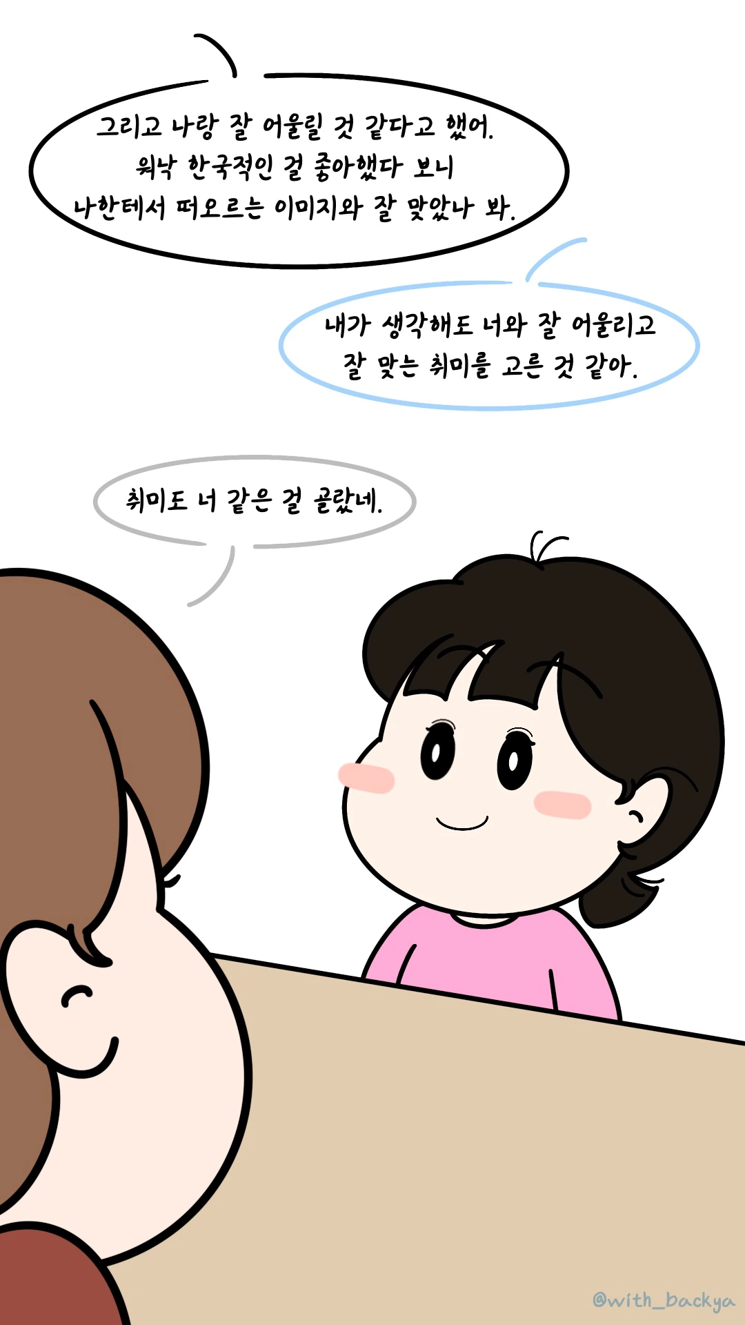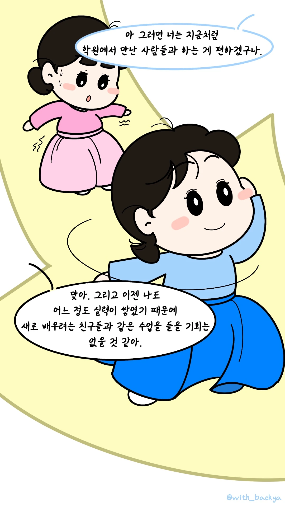 백야_아 그러면 너는 지금처럼 학원에서 만난 사람들과 하는 게 편하겠구나.