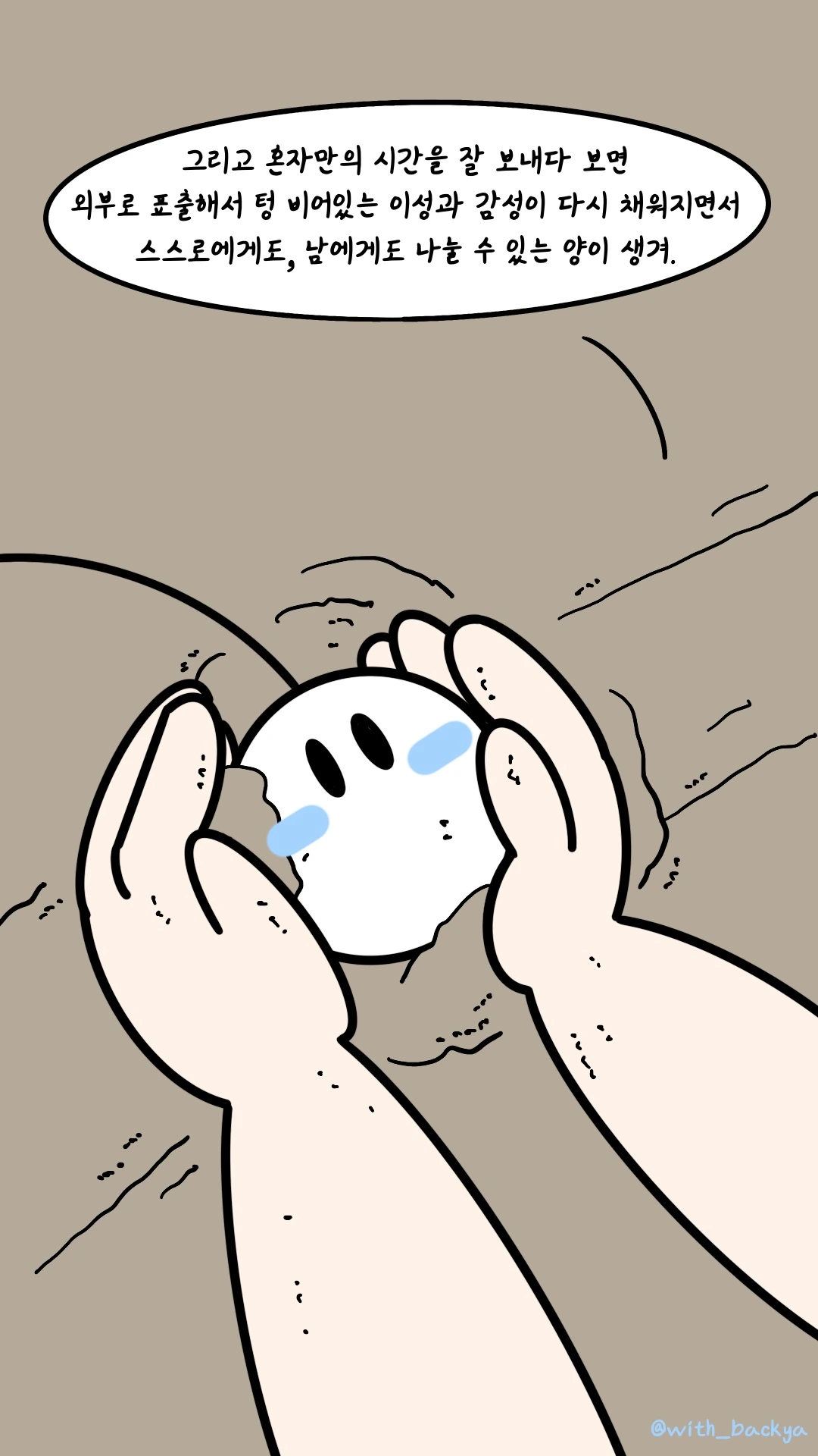 빈아_그리고 혼자만의 시간을 잘 보내다 보면 외부로 표출해서 텅 비어있는 이성과 감성이 다시 채워지면서 스스로에게도, 남에게도 나눌 수 있는 양이 생겨.