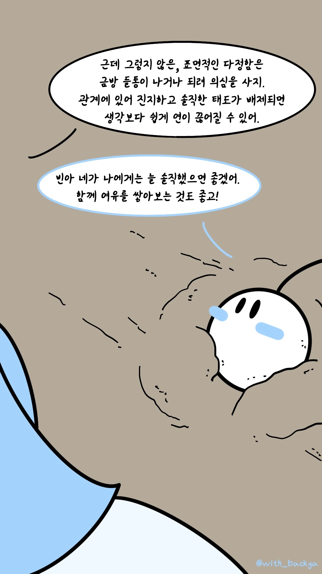 백야_빈아 네가 나에게는 늘 솔직했으면 좋겠어. 함께 여유를 쌓아보는 것도 좋고!