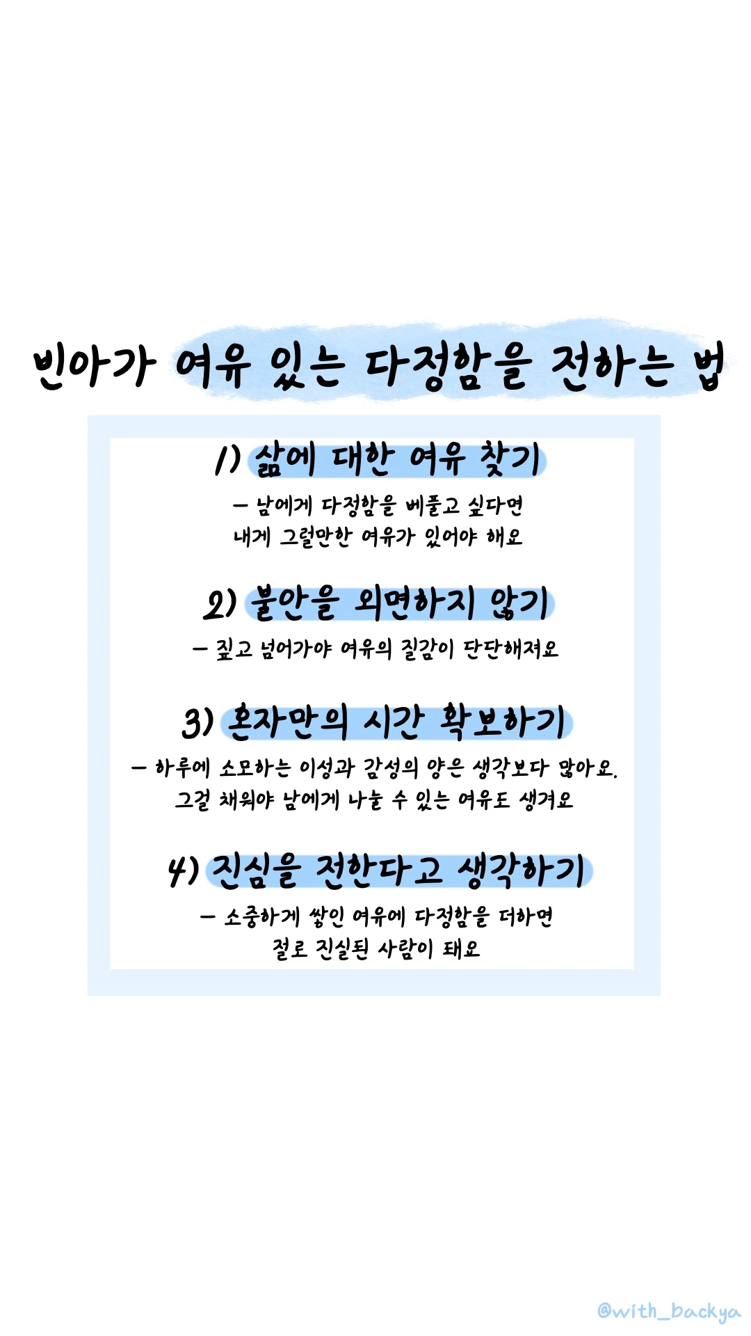 빈아_다정한 사람이 되고 싶다면 기본적으로 여유가 좀 필요한 것 같아.