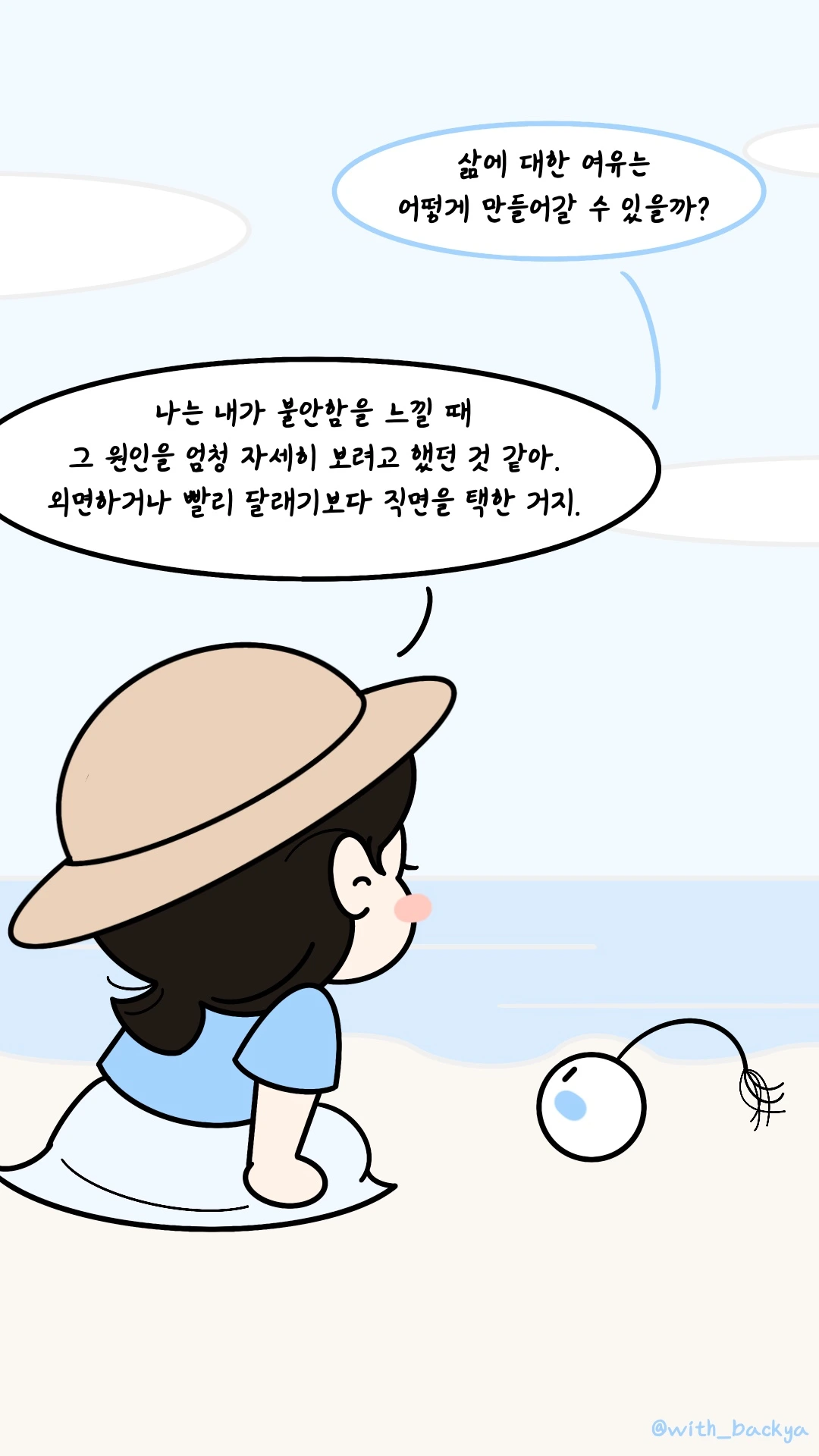 빈아_나는 내가 불안함을 느낄 때 그 원인을 엄청 자세히 보려고 했던 것 같아. 외면하거나 빨리 달래기보다 직면을 택한 거지.