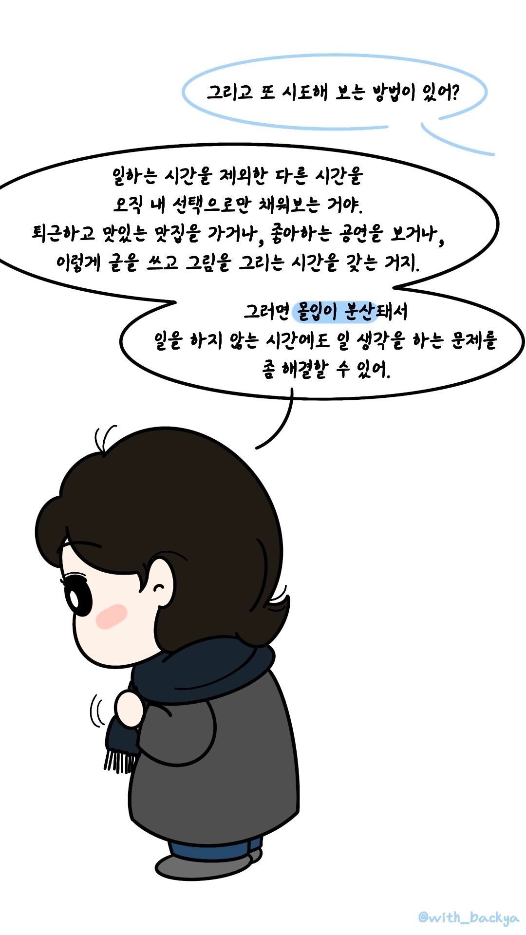 백야_또다시 일에 과몰입하게 되면 나에게 털어놔! 그럼 내가 새로운 방법을 생각해 볼게!